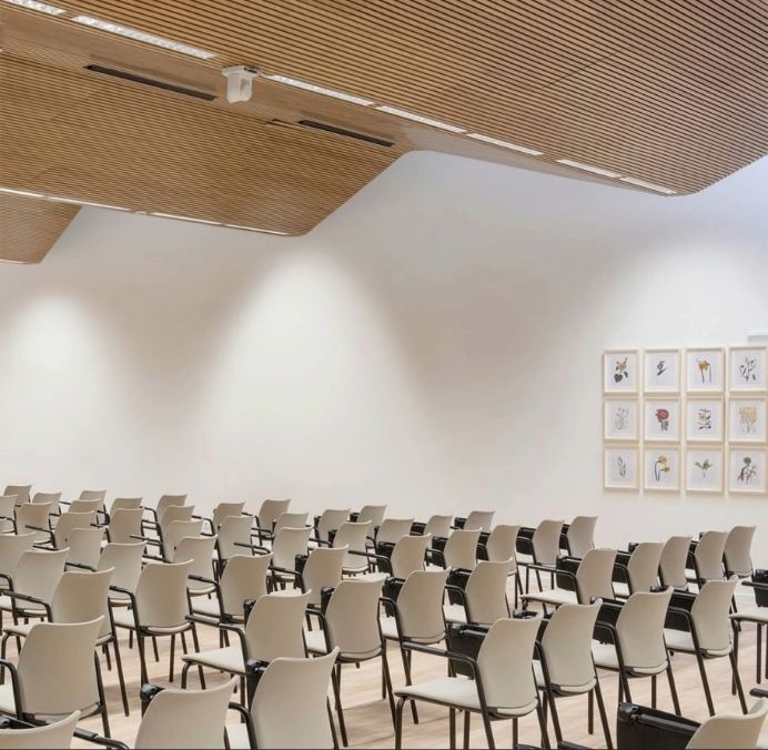 Sigues avanzando y no hay una frontera clara entre zonas, como si todo fuese homogéneo. Las áreas de trabajo se encadenan, alternando mesas abiertas con pequeños salas cerradas que ofrecen privacidad para llamadas, reuniones rápidas o momentos de concentración sin romper el ritmo del conjunto.