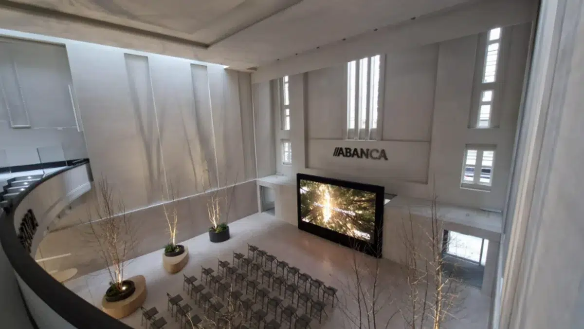 El recorrido se completa con pantallas 3D exteriores e interiores, concebidas como una plataforma de contenidos dinámicos. «Busca ser un referente audiovisual en Galicia», explica Cristina Franco, responsable de Marketing de Abanca.