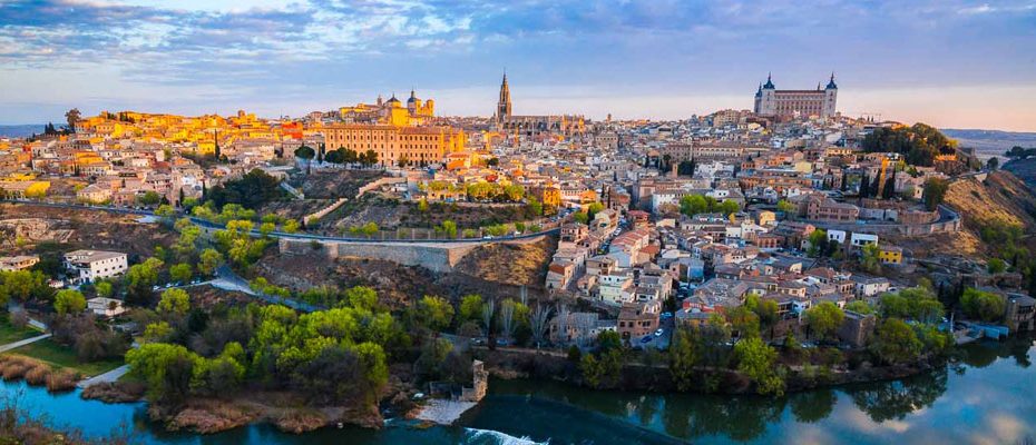 La ciudad de las tres culturas es urbe de piedra, de siglos y de atardeceres lentos. Desde el Mirador del Valle, el conjunto histórico parece una maqueta bañada por luz dorada. El río Tajo rodea la ciudad como un marco natural, mientras la catedral, el Alcázar y los tejados centenarios se incendian con los últimos rayos del día.