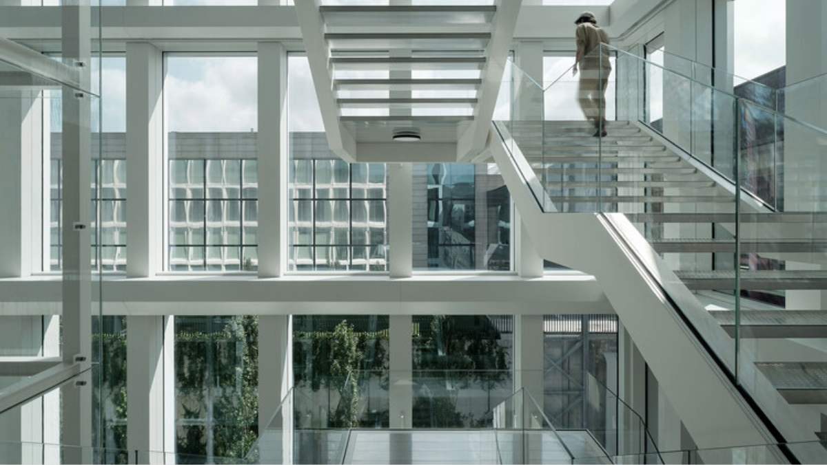El gran atrio y las escaleras del edificio