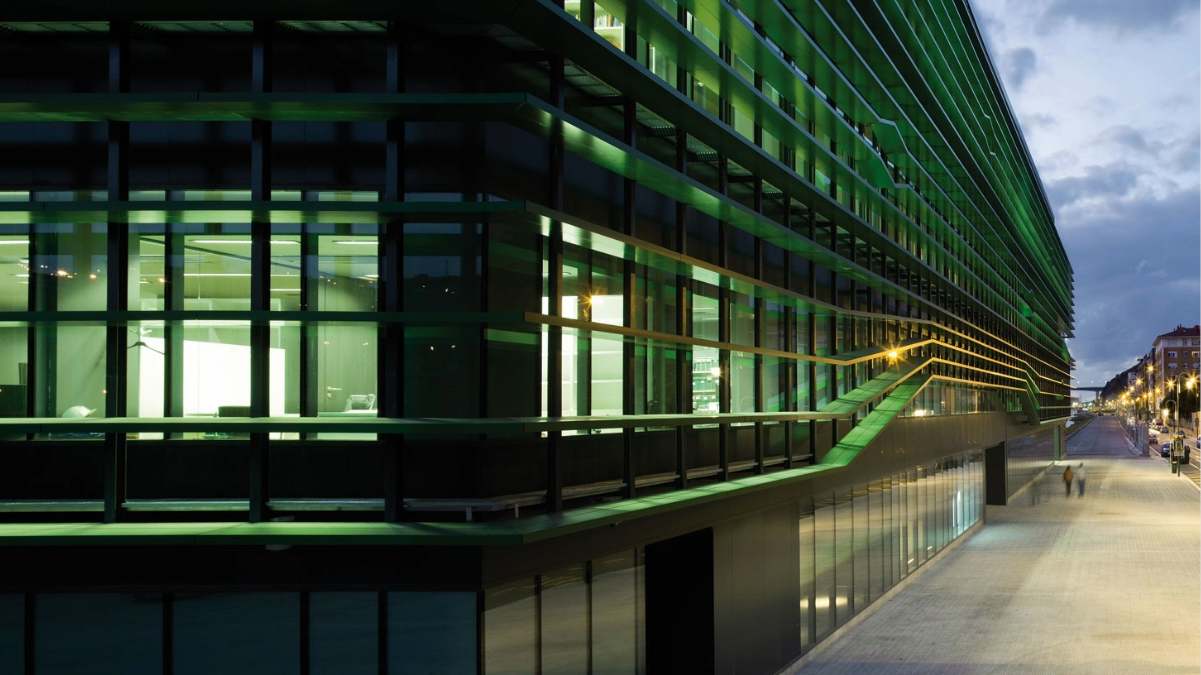 La iluminación se adapta automáticamente a la ocupación y a la luz exterior. Los sistemas sanitarios reducen el consumo de agua. Todo el edificio funciona como un sistema integrado de eficiencia energética.