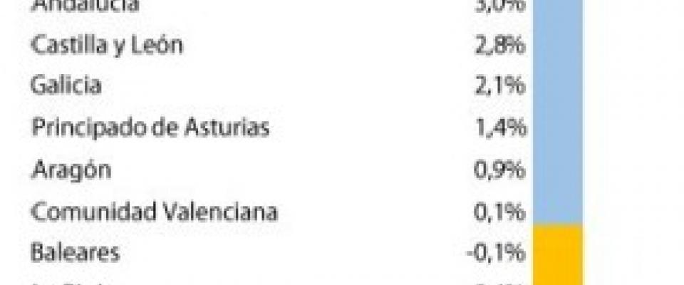 La Rioja es la comunidad en la que los precios más han caído desde cifras máximas en 2007, en concreto un 56,1%. Castilla-La Mancha se sitúa en segundo lugar, con una caída acumulada del 53,7%; en Aragón, el precio medio ha caído un 49,8% en diez años. En Baleares, Galicia y Extremadura es donde más se ha contenido el precio medio, con caídas acumuladas de un 28,4%, un 32% y un 32,2%, respectivamente.